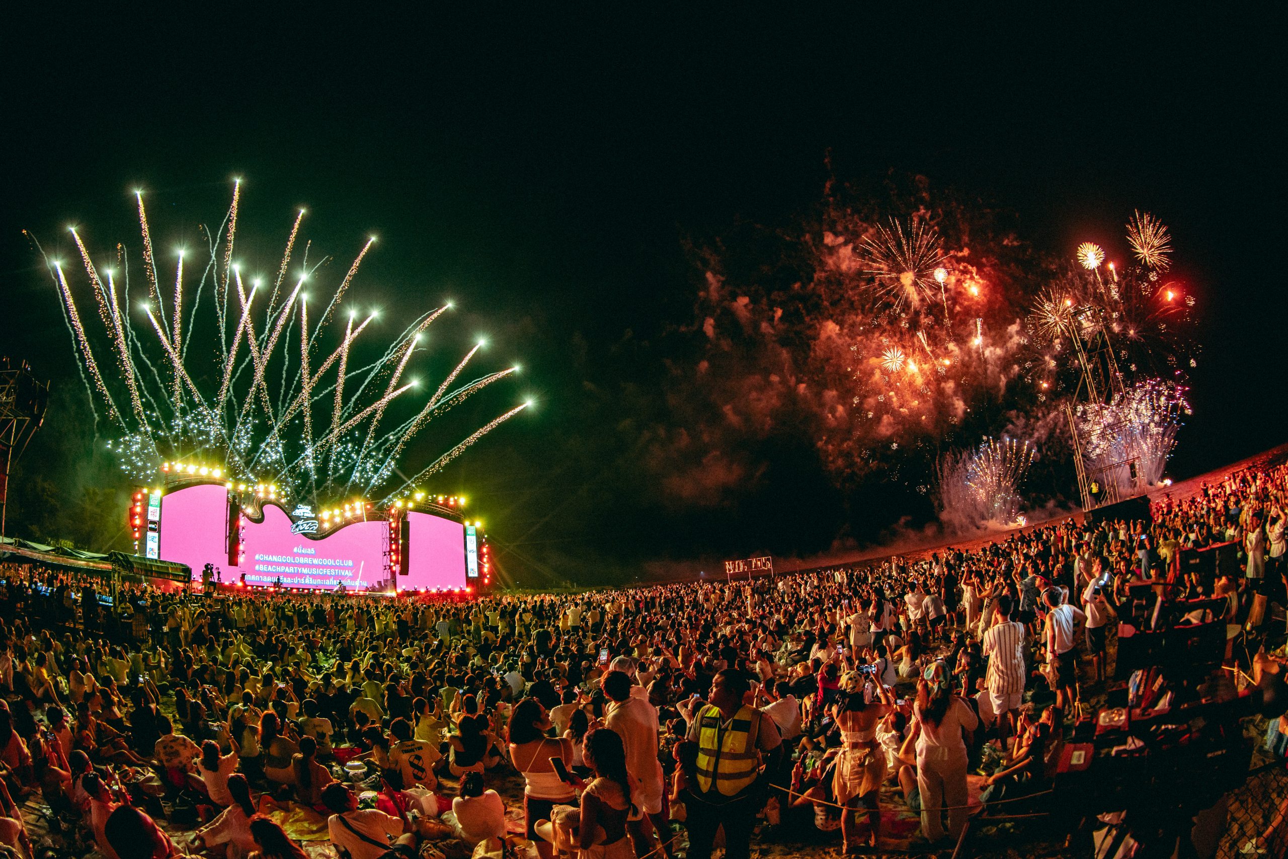 สนุกกันต่อกับ Taitosmith ออกมาชวนทุกคนลุกขึ้นมาปลดปล่อยพลังของตัวเองไปด้วยกันอย่างสุดมัน และเดินทางมาถึงช่วงเวลาเซอร์ไพรส์ที่ถูกออกแบบมาเพื่อปีนี้เท่านั้น เมื่อไฟในงานดับลง เพลง EDM ก็ดังขึ้นมาทันที พร้อมกับเสียงดังสนั่นจาก พลุกลางน้ำ ถูกยิงขึ้นมาจากกลางทะเล เป็นภาพที่ท้องฟ้ามืดสนิทถูกแต่งแต้มด้วยพลุอลังการต่อเนื่องมากกว่า 5 นาที จนกลายเป็นภาพความประทับใจของงานปีนี้ ความฟินจากศิลปินยังไม่หมดแค่นี้ เมื่อ Joey Phuwasit ขึ้นมาสร้างความมันกับจังหวะโจ๊ะๆ บนเวที และปิดท้ายความมันกับเจ้าพ่อแร็ปเปอร์ JoeyBoy เปลี่ยนชายหาดให้กลายเป็นแดนซ์ฟลอร์ขนาดใหญ่ ส่งทุกคนกลับบ้านด้วยความประทับใจระดับ 10 เต็ม 10!