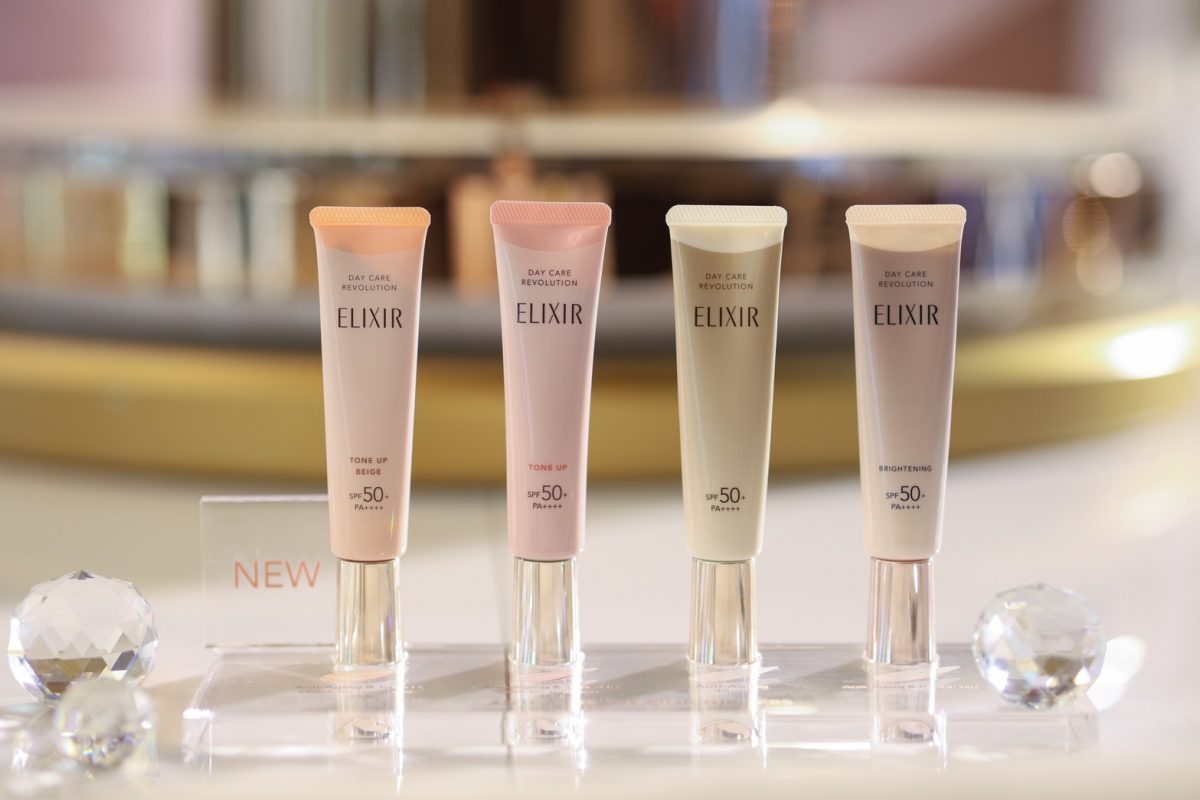 ELIXIR (อิลิคเซอร์) แบรนด์ Anti-Aging สกินแคร์อันดับ 1ในญี่ปุ่น^ผู้เชี่ยวชาญด้านคอลลาเจนมายาวนานกว่า 40 ปี จัดงาน ELIXIR Tone Up UV, The New Era of Pearl Glow Moments ณ DUSIT CENTRAL PARK ต่อยอดความสำเร็จของกันแดดที่มียอดขายกว่า 2.5ล้านชิ้นทั่วโลก*ด้วยการเปิดตัวผลิตภัณฑ์กันแดดขายดีเฉดสีใหม่! ELIXIR Day Care Revolution Tone Up SPF50+ PA++++ สี Pure Beige กันแดดโทนอัพบูสคอลลาเจน+ปรับโทนสีผิวให้สม่ำเสมอ พร้อมปกปิดจุดด่างดำ ผสาน 3 คุณสมบัติในหนึ่งเดียว ทั้งกันแดด,ไพร์เมอร์ และมอยส์เจอร์ไรเซอร์บำรุงผิว ช่วยให้ผิวดูเปล่งปลั่งอ่อนเยาว์ ละเอียดเรียบเนียน กระจ่างใสขึ้น และช่วยให้เมคอัพติดทนนานยิ่งขึ้น เผยผิวสวยโกลว์ใสเปล่งปลั่ง12ชั่วโมง**