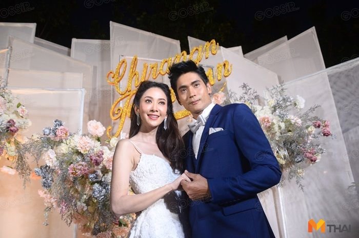 งานเช้าผ่านพ้นไปอย่างอบอุ่นและสนุกสนานกับขันหมากแบบไทยๆ สำหรับพิธีแต่งงานของ ยุ้ย จีรนันท์ และ ธันน์ ธนากร มาช่วงเย็นกับงานฉลองบอกเลยว่าเจ้าบ่าวเจ้าสาวสวยหล่อไม่แพ้งานเช้า พร้อมเปิดใจต่อหน้าสื่อมวลชน โดยยุ้ยและธันน์ควงคู่ให้สัมภาษณ์ว่า