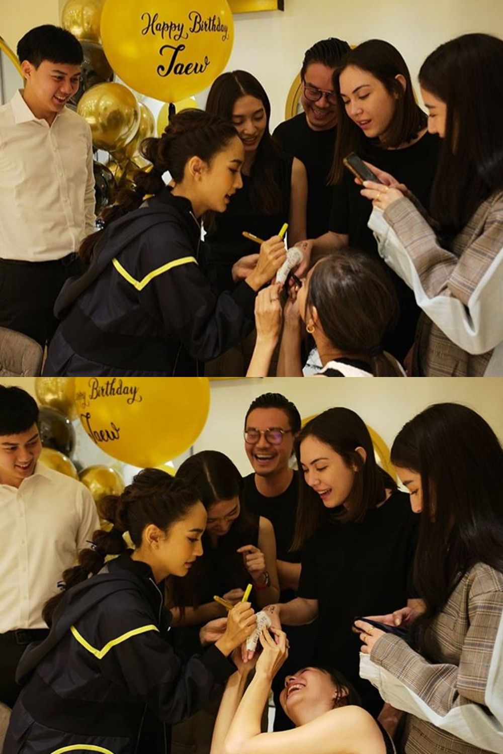 แต่ละคนเป็นนางเอกฮอตงานแน่น กว่าจะหาเวลาว่างมาเจอกันได้แต่ละครั้งก็ยากเย็น กว่าจะได้เห็น 5 สาวแก๊งเฟอร์บี้รวมตัวกันครบองค์ประชุมสักที เหมือนอย่างล่าสุดค่ำคืนวานนี้ แต้ว ณฐพร เสร็จจากงานเปิดวิกบิ๊ก 3 รีบควงหวานใจหนุ่ม ต้น อาชว์ มาเจอเพื่อนๆ แก๊งเฟอร์บี้อย่าง มิว นิษฐา มาพร้อม ไฮโซเซนต์ ธราภุช, มิ้นต์ ชาลิดา มาพร้อม ภูผา เตชะณรงค์, เต้ย จรินทร์พร ที่วันนี้ไม่มี หนุ่มอาเล็ก ธีรเดช มาเป็นบอดี้การ์ดข้างกาย รวมถึง แมท ภีรนีย์ ที่โผล่มารวมตัวแบบมีเฝือกที่มือขวา!! แถมไร้เงาหวานใจหนุ่ม สงกรานต์ เตชะณรงค์ ที่ไม่มีภาพออกมาให้เห็น โดย 3 สาว มิว-มิ้นต์-แมท ทำเซอร์ไพรส์วันเกิดย้อนหลังให้ แต้ว-เต้ย ด้วย