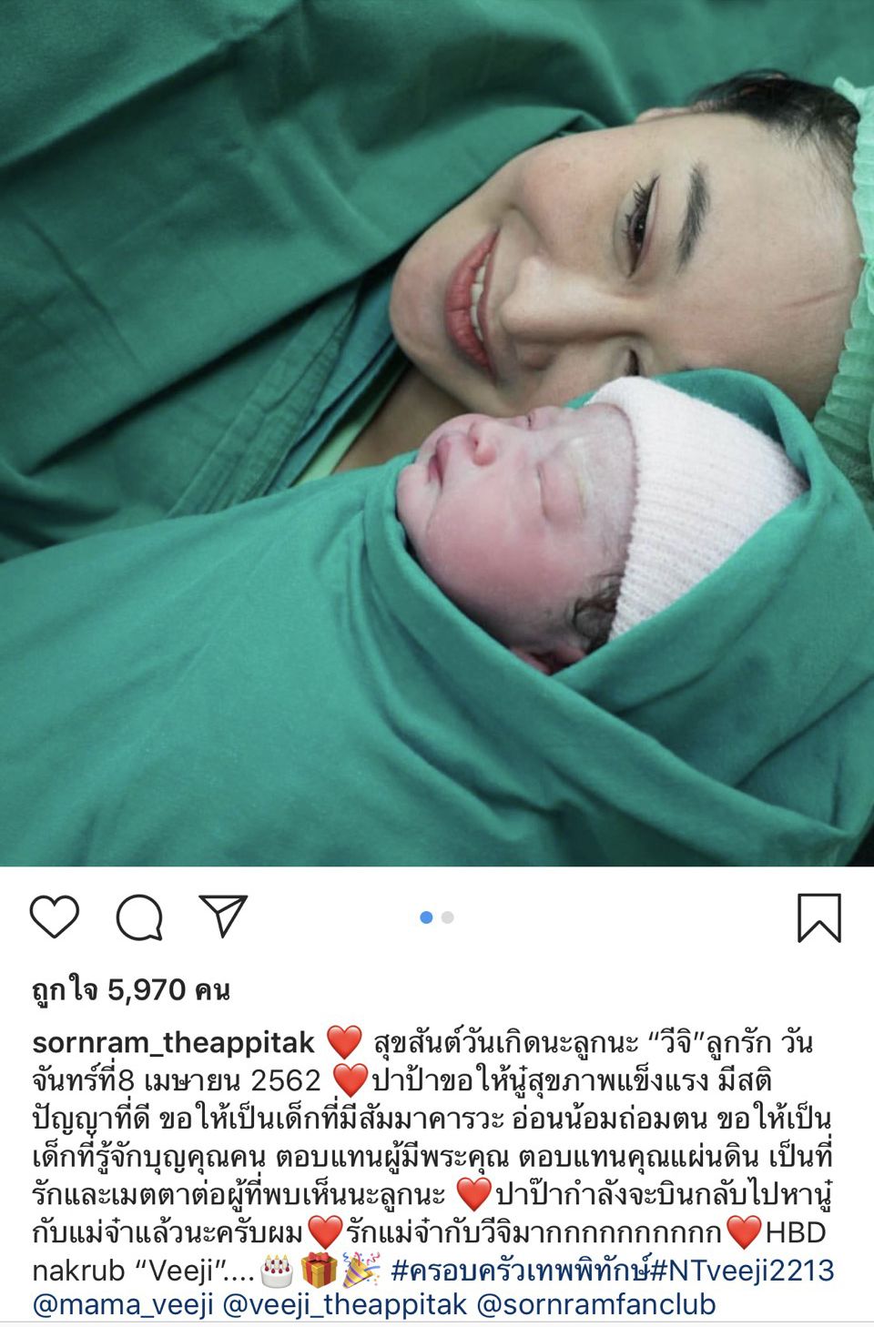 ทางนี้ก็คลอดแล้วจ้าาาาา ติ๊ก บิ๊กบราเธอร์ หรือ ติ๊ก กนิษฐรินทร์ ภรรยาสาวของนักแสดง หนุ่ม ศรราม โดยวันนี้(8 เม.ย.) สาวติ๊กได้ให้กำเนิด น้องวีจิ ลูกสาวคนแรกเรียบร้อยแล้ว โดยตั้งชื่อให้ว่า ด.ญ.วีจิ เทพพิทักษ์ แปลว่า “วีรสตรีผู้กล้าหาญ” ส่วนทางพ่อหนุ่มนั้น… ยังคงเช็คอินอยู่ที่ประเทศเยอรมัน พลาดโมเม้นท์ในห้องคลอดเนื่องจากติดภารกิจ ซึ่งเจ้าตัวได้โพสต์อวยพรวันเกิดให้กับลูกสาว บอกกำลังบินกลับไปหาลูกน้อยกับภรรยาแล้วจ้ะ ยังไงทีมข่าว Gossipstar.mthai.com ต้องขอแสดงความยินดีกับพ่อหนุ่ม และแม่ติ๊กมา ณ โอกาสนี้ด้วยจ้า
