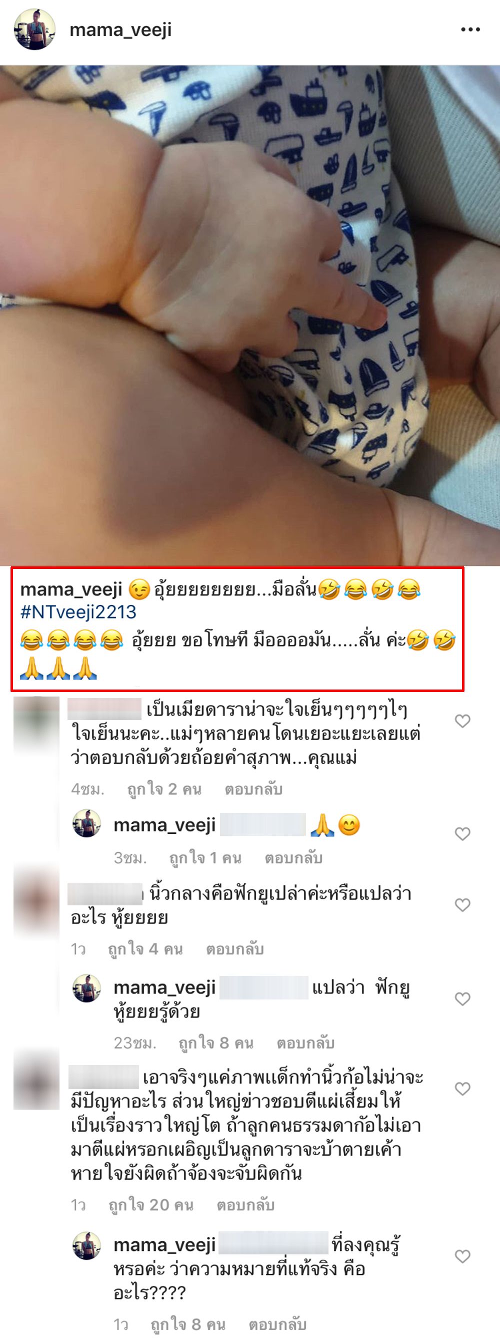 ส่วนประเด็นดราม่าล่าสุดที่ภรรยาสาว ติ๊ก กนิษฐ์รินทร์ โพสต์ภาพมือลูกสาวชูนิ้วกลางพร้อมแคปชั่นว่า “อุ้ยยยยยย…มือลั่น #NTveeji2213 #เกรียนเก่ง #กระจอก #เสือกทำตัวเป็นกรูรู #เสี่ยว #ถ้าอยากเดี่ยวมึงนัดวัน #พวกขี้แซะ #ขยันแขวะ” ก่อนจะแก้ไขแคปชั่นเหลือแค่เพียง “อุ้ยยยยยย…มือลั่น #NTveeji2213 อุ้ยยย ขอโทษที มืออออมัน… ลั่นค่ะ” ซึ่งคาดว่า สาวติ๊ก ปรี๊ดแตกกับคอมเม้นท์จากเกรียนคีย์บอร์ด