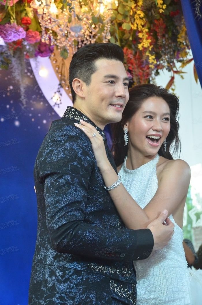 มีพิธีหมั้นแบบส่วนตัวไปแล้ว สำหรับบ่าวสาวป้ายแดง โดม ปกรณ์ ลัม และ เมทัล สุขขาว ล่าสุดวันนี้ (17 ส.ค. 2562) ฉลองแต่งงานอย่างชื่นมื่นอีกครั้ง พร้อมเชิญแขกผู้มีเกียรติร่วมงานมากมาย ซึ่งวันนี้ โดม-เมทัล หล่อสวยไม่น้อยหน้าวันหมั้นเลย เซอร์ไพรส์แขกด้วยการโชว์พลังเสียงร้องเพลงก่อนพูดคุยกับสื่อมวลชน เรียกว่าเป็นการแถลงข่าวแต่งงานที่แปลกแหวกแนวกว่างานไหนๆ ทั้งคู่เปิดเผยความรู้สึกถึงงานครั้งนี้ว่าดีใจมาก คบหากันมาราว 7 ปี ขอแต่งงานไปเมื่อเดือนกันยายนปีก่อน และตั้งใจที่จะแต่งงานกันในเดือนเกิดของเจ้าสาว นั่นคือสิงหาคมปีนี้ ซึ่งทุกอย่างเป็นไปตามที่ตั้งใจไว้ เจ้าสาวพูดอย่างสดใสร่าเริงว่าไม่เคยคิดว่าชีวิตจะมีงานแต่งแบบนี้ ที่สำคัญได้แต่งกับหนุ่มหล่ออย่างพี่โดมด้วย เพราะเธอไม่ได้วางเป้าหมายในชีวิตมาก่อน ใช้ชีวิตให้มีความสุขไปวันๆ แต่วันนี้เป็นวันที่เธอมีความสุขที่สุด ทั้งคู่ตื่นเต้นมากกว่าวันหมั้นเพราะแขกมาร่วมงานเยอะ ร่วมถึงวันนี้มีสื่อมวลชนด้วย ที่สำคัญต้องร้องเพลงโชว์อีกต่างหาก
