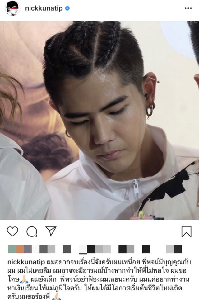 แต่ล่าสุดทาง พจน์ อานนท์ ก็ตัดสินใจลบทุกอย่างที่แฉออกไปจากอินสตาแกรมของตัวเอง มีแต่เพียงรูปถ่ายที่ไปปรึกษากับทนายความ พร้อมถือสัญญาอะไรบางอย่างไว้ ส่วนหนุ่มนิกก็ยังคงภาพและข้อความทุกอย่างไว้เหมือนเดิม แต่ภาพล่าสุดที่หนุ่มนิกลงคือ วอนขอร้องทางผู้กำกับอย่าฟ้องตนเอง และขอโอกาสเริ่มต้นชีวิตใหม่ ทำเอาทุกๆ คน งงไปหมดแล้ว ว่าเรื่องนี้จบยังไง เพราะหนุ่มนิกเป็นคนเปิดเรื่องนี้มาเอง และจะปิดเรื่องนี้ให้มันจบยังไง