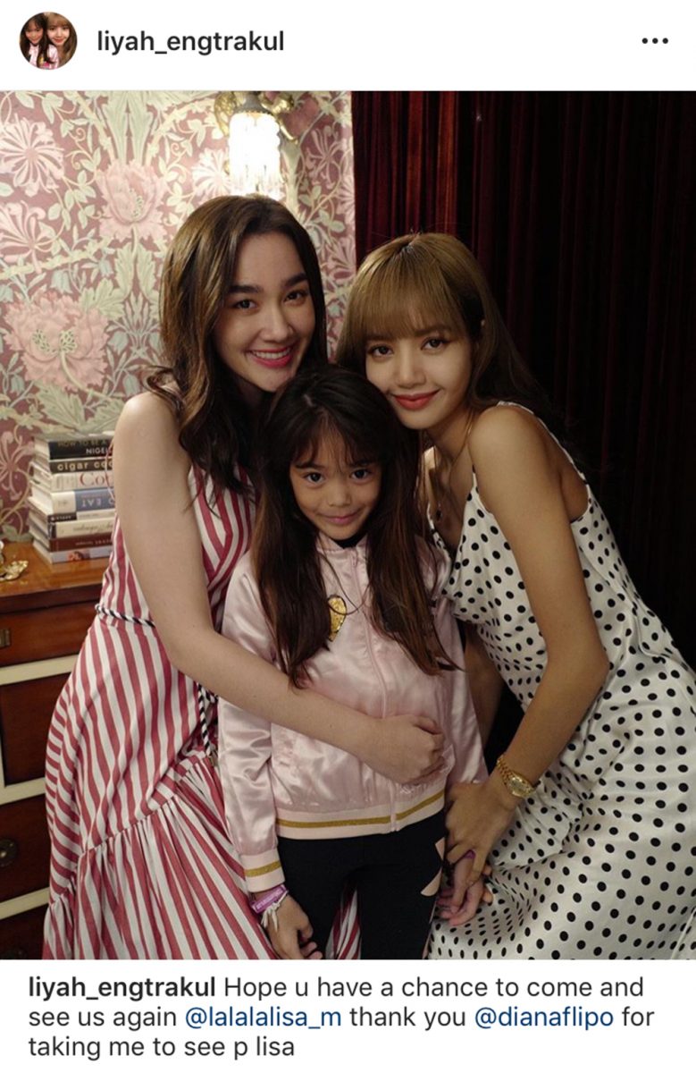 น้องลียา ยกให้ พี่ลิซ่า เป็นไอดอล ถือเป็นความโชคดีของลูกสาว เนื่องจากวันนั้น เดียร์น่า ฟลีโป ได้นัดทานข้าวกับ ลิซ่า ในฐานะพี่น้องที่สนิทซึ่งเรียนร้องเพลงกับคุณครูคนเดียวกันมาตั้งแต่เด็กๆ โดย เดียร์น่า รู้ว่า น้องลียา ชอบมากเลยชวนมาทานข้าวด้วยกัน ลูกสาวกลับบ้านมาเล่าให้คุณแม่ฟังแบบฟินสุดๆ ยิ้มไม่หุบ เล่าความน่ารักของ ลิซ่า ช่วยจัดทรงผมให้น้องตอนถ่ายรูปด้วย ไม่รู้คนชม ลียา มีความคล้าย ลิซ่า ไม่ง่ายกว่าจะได้ตัดผมหน้าม้าตาม ลูกสาวถึงกับร้องห่มร้องไห้อยู่ 3 วันกว่าคุณพ่อจะใจอ่อนยอมให้ตัด