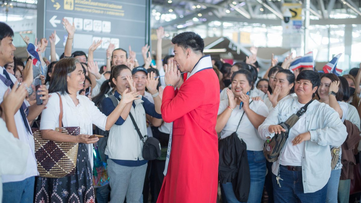 “วันนี้ได้เห็นทุกคนมาต้อนรับผมเยอะมาก พูดไม่ออกเลยครับ คือผมเห็นทุกคนใส่เสื้อขาว ยืนรอ เตรียมดอกไม้ เตรียมป้าย แล้วเสียงเชียร์ดังลั่น มันอบอุ่นหัวใจมาก ผมอยากขอบคุณจากใจจริง ๆ ที่ทำให้การกลับบ้านครั้งนี้ไม่ธรรมดา แต่มันคือ วันประวัติศาสตร์ของประเทศไทย ผมภูมิใจมากครับ โดยเฉพาะที่ได้ทำให้ประเทศไทยกลับมาคว้ามงจากเวทีระดับโลกอีกครั้ง นี่คือมงที่สองของไทยจาก Mister Model International และเป็นครั้งแรกในรอบ 10 ปี ผมไม่ใช่คนไทยคนแรกที่ชนะเวทีนี้ แต่ผมรู้สึกเป็นเกียรติมากที่ได้เป็นคนที่ พามงกลับบ้าน”
