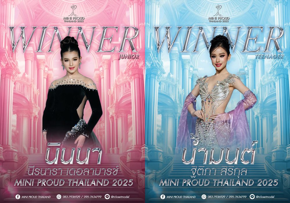 ต้องขอแสดงความยินดีกับผู้ชนะเลิศ Mini Proud Thailand 2025 ทั้ง 2 รุ่น ด้วยความสามารถ ความตั้งใจ และเสน่ห์เฉพาะตัวของทั้งคู่ ได้เปล่งประกายส่องสว่างให้กับดวงดาว และเป็นบันไดก้าวเล็กๆ ให้ก้าวไปสู่ความขวัญ คือจุดเริ่มต้นของความภาคภูมิใจที่ยิ่งใหญ่