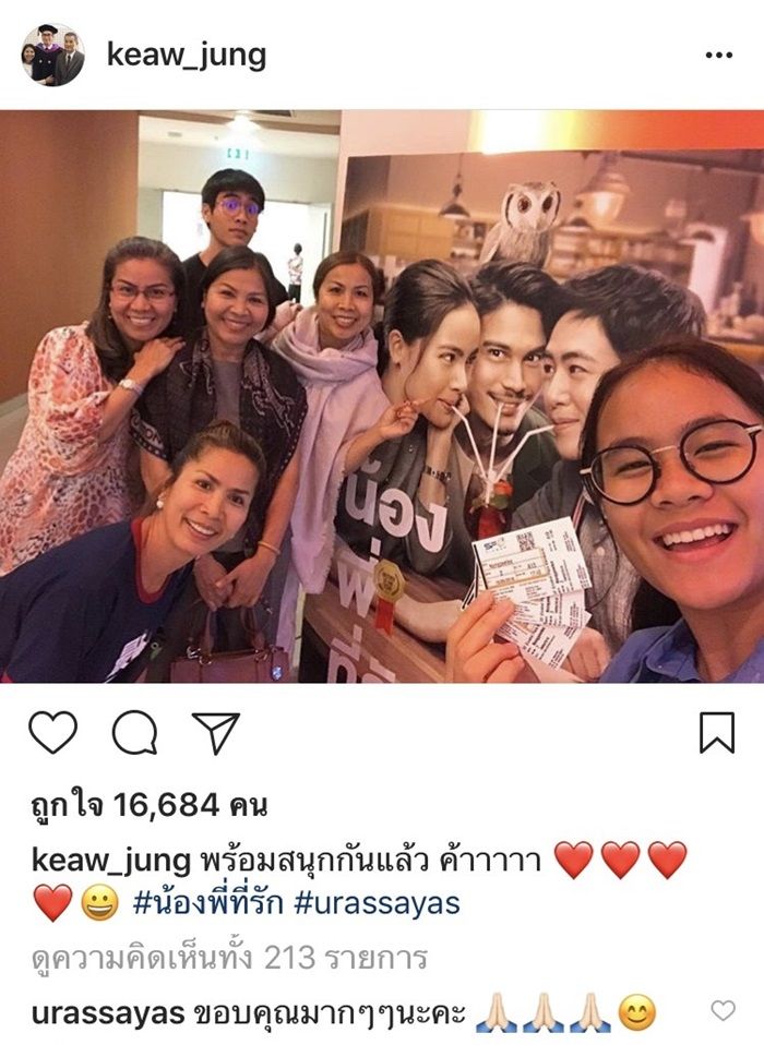 ทำเอา ญาญ่า อุรัสยา ยิ้มหน้าบานไปเลยเจ้าค่ะ เมื่อ แม่แก้ว และคนในครอบครัวของพี่ชายคนสนิท ณเดชน์ คูกิมิยะ เข้าโรงหนังกันยกครัว ชื่นชมภาพยนตร์เรื่องแรกของคุณเธออย่าง น้อง.พี่.ที่รัก เรียกว่าให้กำลังใจกันอย่างเต็มสตรีม งานนี้แม่แก้วไม่พลาดโพสต์รูปฟินๆ ก่อนเข้าไปนั่งชมในโรงให้เหล่าแฟนคลับได้ระรื่นกัน แคปชั่นชัดเจนว่าตั้งใจมาอุดหนุน งานนี้เลยแลดูเหมือนเป็นธุรกิจครอบครัวกลายๆ ซึ่งสาวญาญ่าก็เข้ามาคอมเม้นต์ขอบคุณยกใหญ่ แฮปปี้สุดอะไรสุดกับผลงานภาพยนตร์เรื่องแรกในชีวิตการแสดง เข้าโรงวันแรก ครอบครัวหวานใจ เอ้ย!! ครอบครัวพี่ชายคนสนิทก็ไม่พลาดบึ่งมาให้กำลังใจซะแล้ว